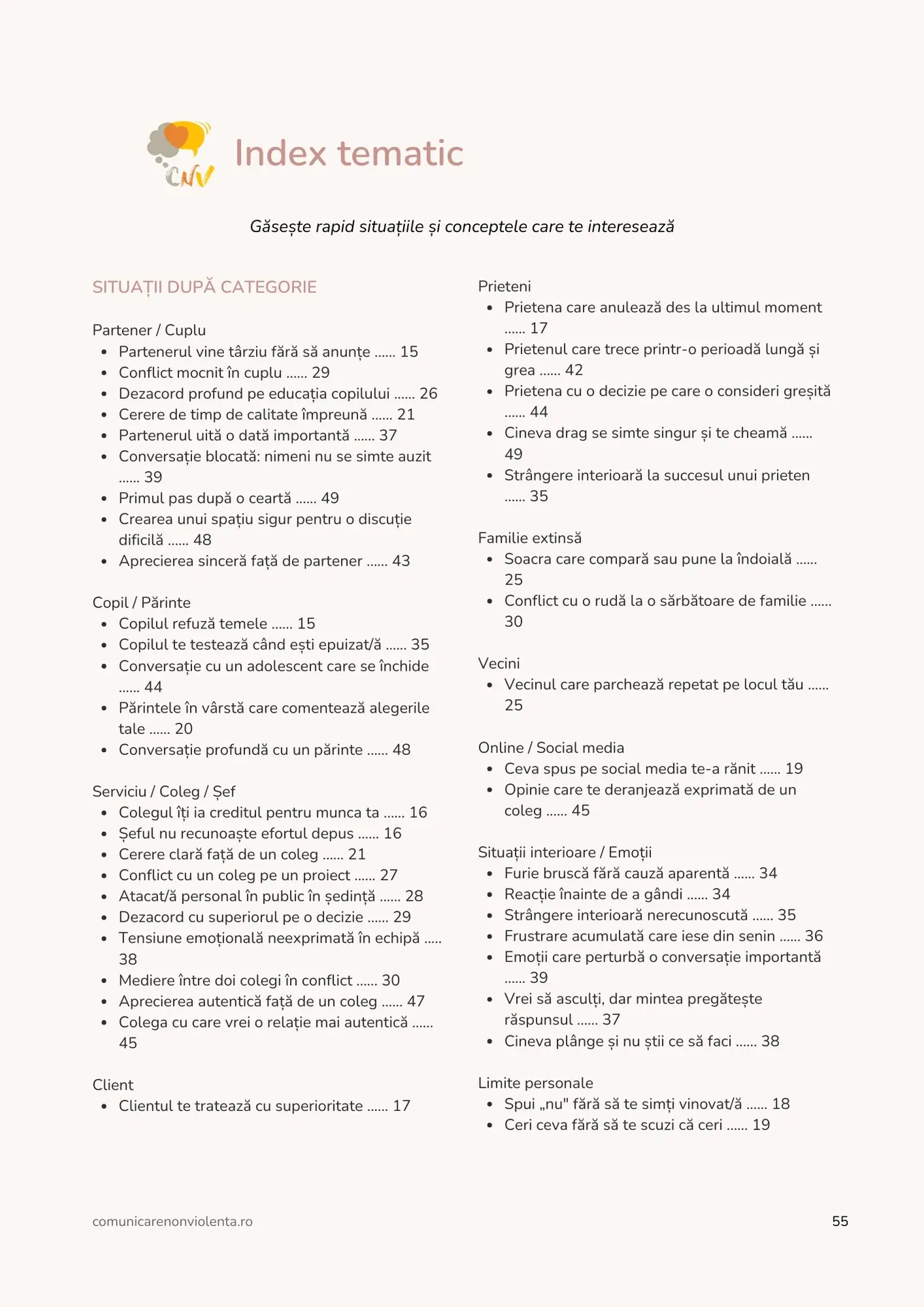 Index tematic ca să găsești rapid situațiile relevante pentru tine